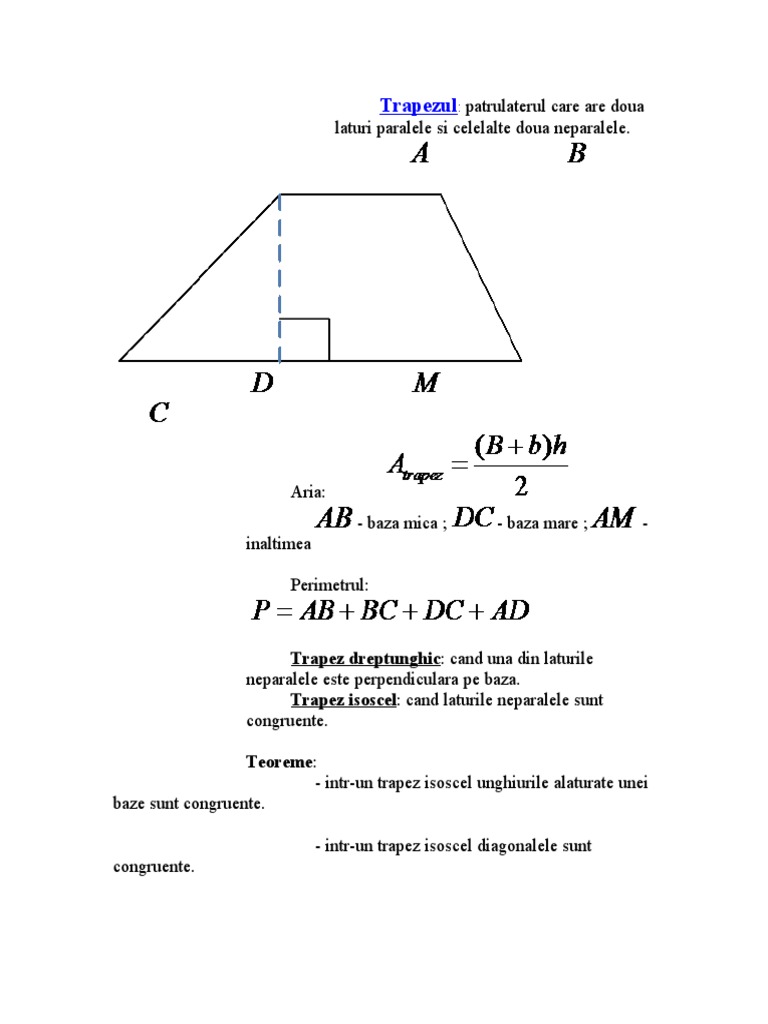 Trapezul Trapez Dreptunghic Cand Una Din Laturile Trapez Isoscel Cand Laturile Neparalele Sunt