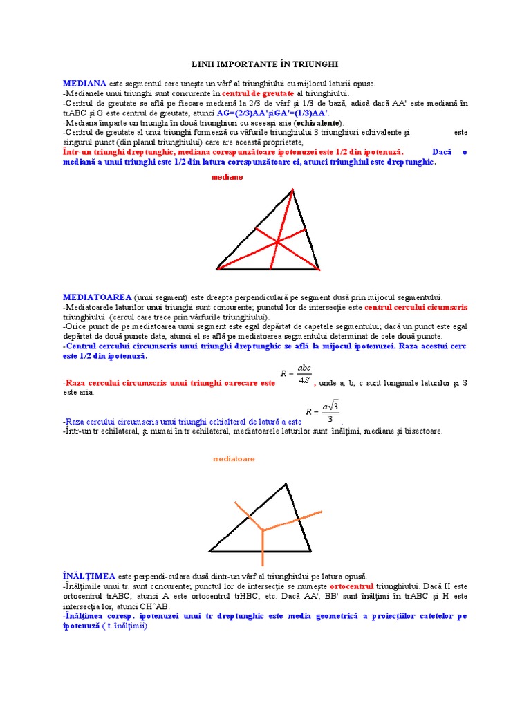 Glosar Linii Importante In Triunghi R E I Resurse Educație