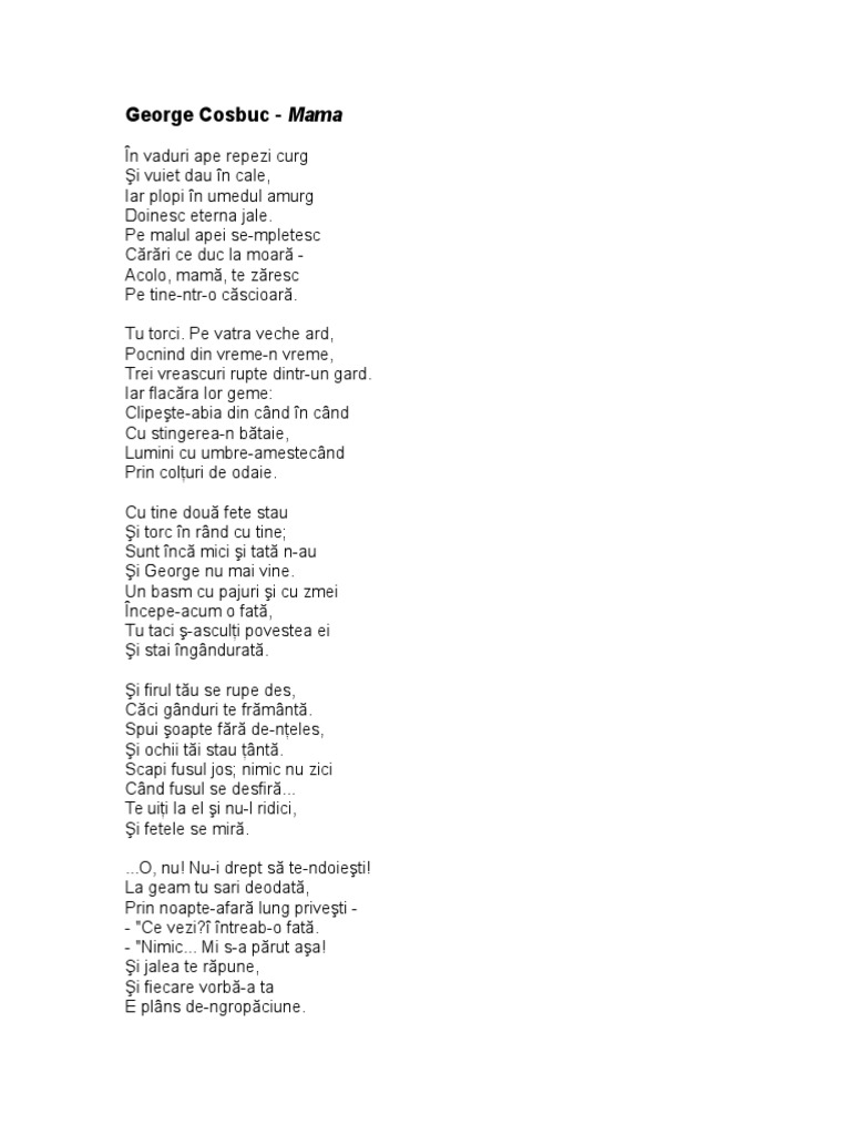 Poezia Mama De George Cosbuc In Vaduri Ape Repezi Curg Si Vuiet Dau In Cale Iar Plopi In Umedul Amurg Doinesc Eterna Jale Pe Malul Apei Male Male Sketch Art