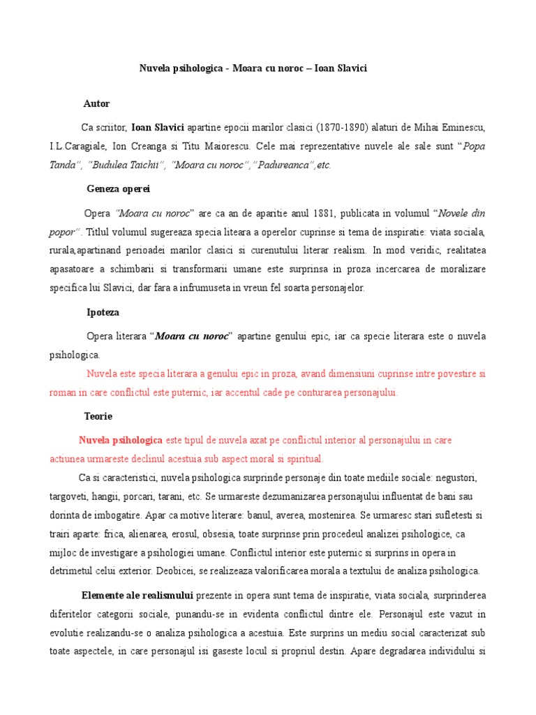 2 Nuvela Psihologica Moara Cu Noroc Ioan Slavici Pdf
