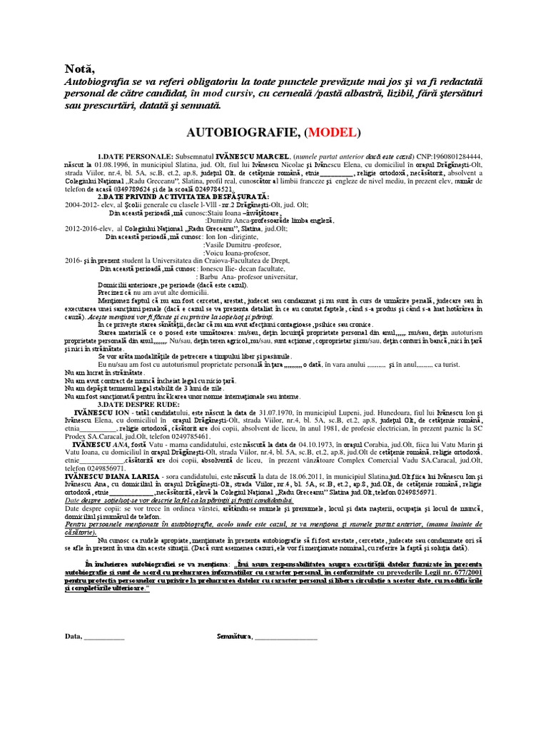 Model Autobiografie Academia De Politie 2019