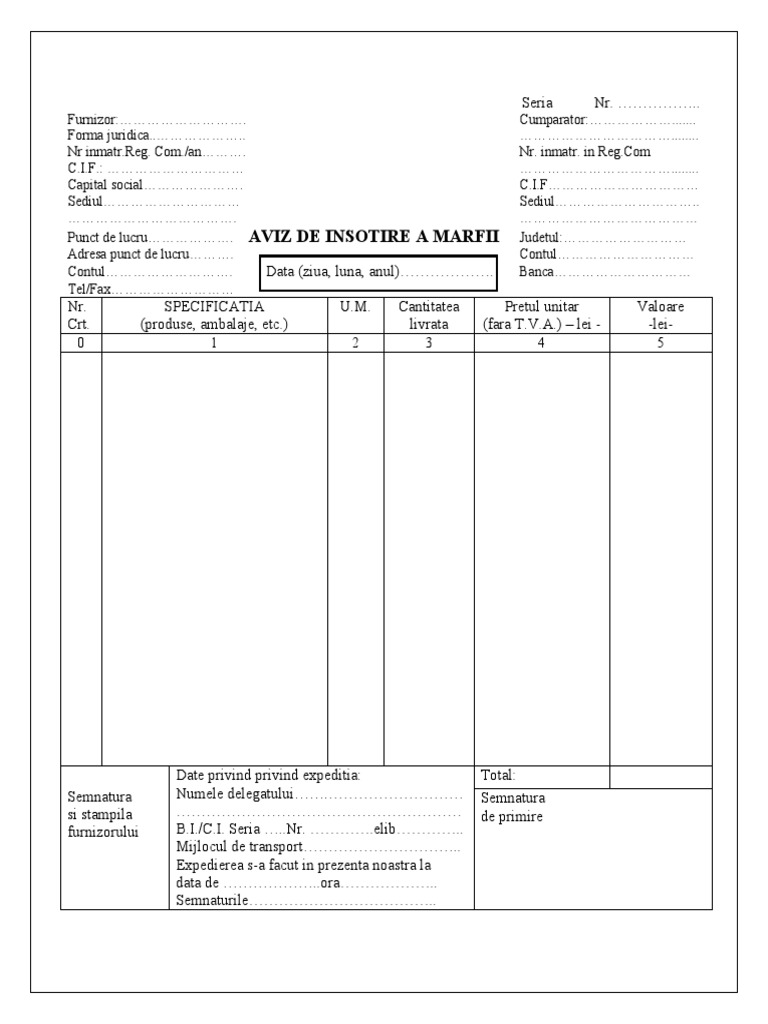 Aviz De Insotire A Marfii Model Word Pdf Sau Excel