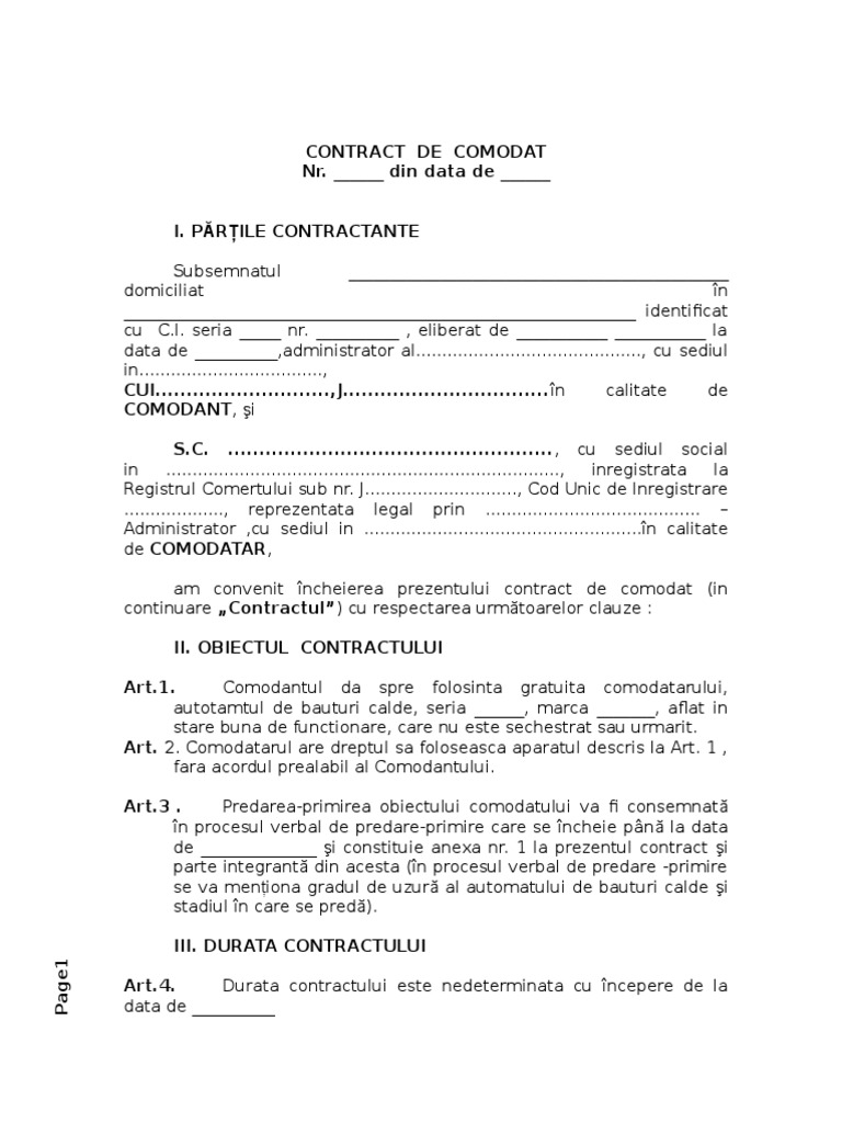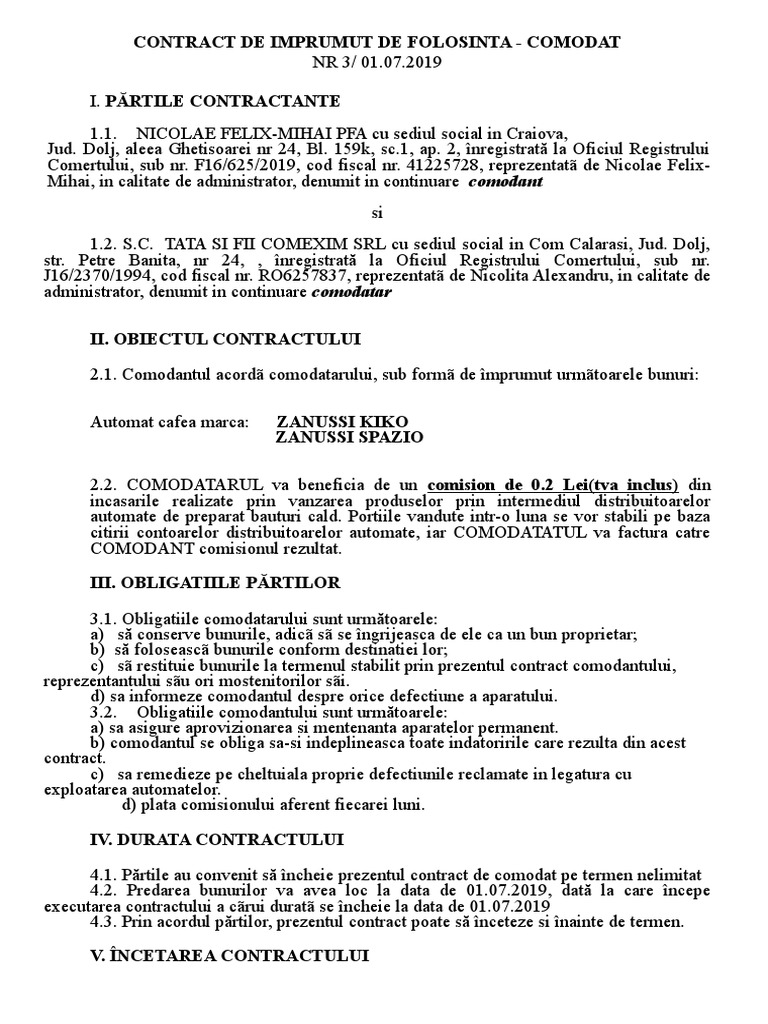 Contract De Comodat Ap Cafea