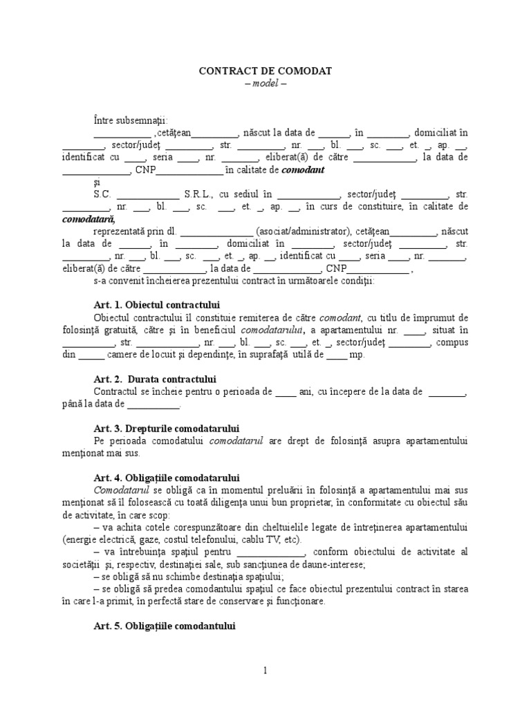 Model Contract De Comodat Locuinta Laurentiu Mihai Rtf