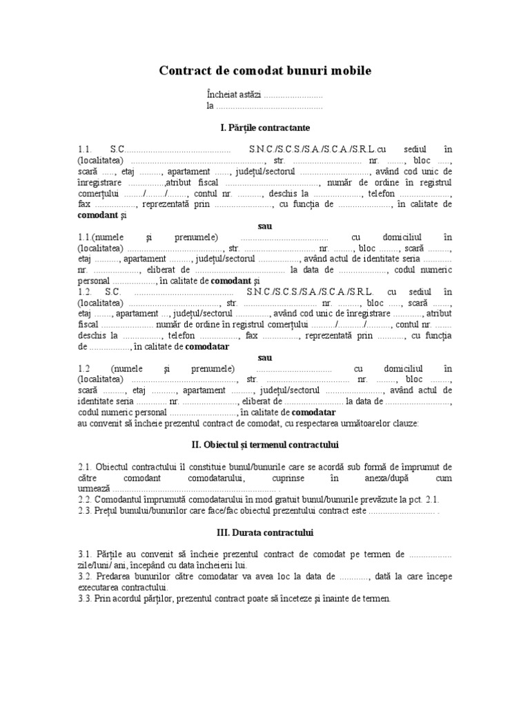 Doc Model Contract De Comodat Pentru Autoturism Laurentiu Mihai