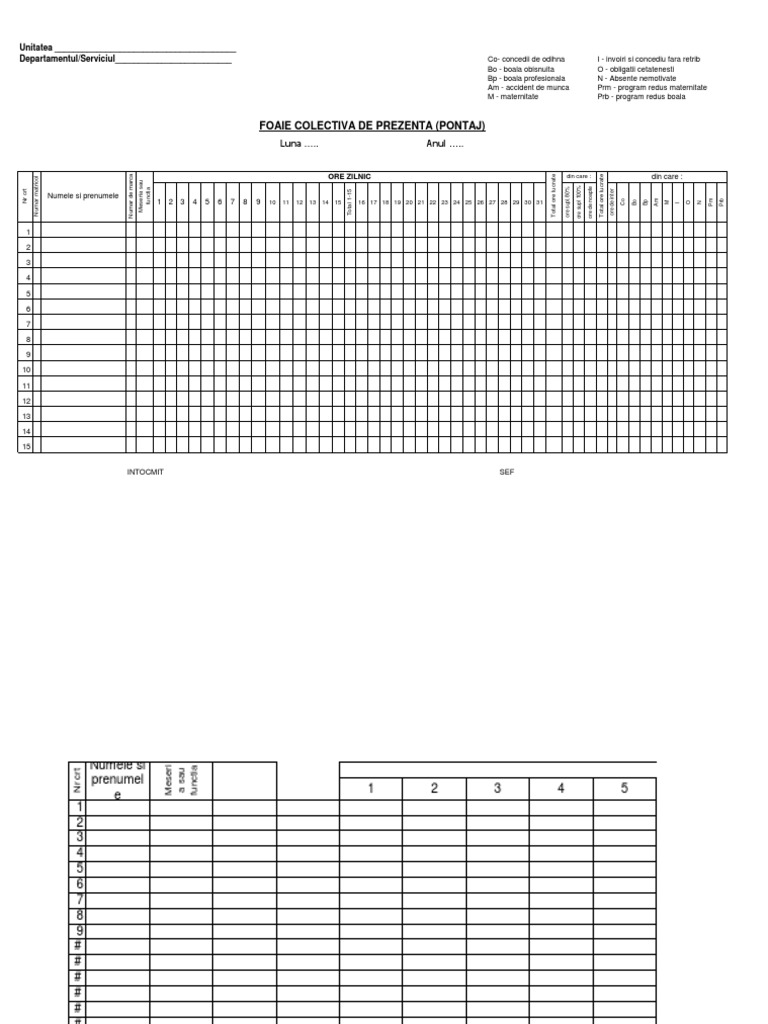 Foaie Colectiva De Prezenta Fisa Pontaj