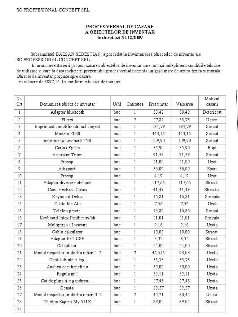 Proces Verbal De Predare Primire Apartament Docx U2022 U2022 Anexa 1 Parte Integrant U0103 Din Contractul De U00eenchiriere U2022 U2022 Proces Verbal De Course Hero