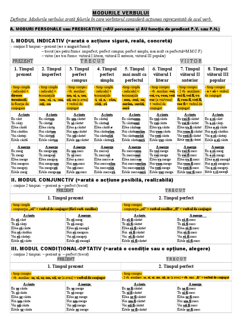 Modurile Si Timpurile Verbelor In Romana Tabel