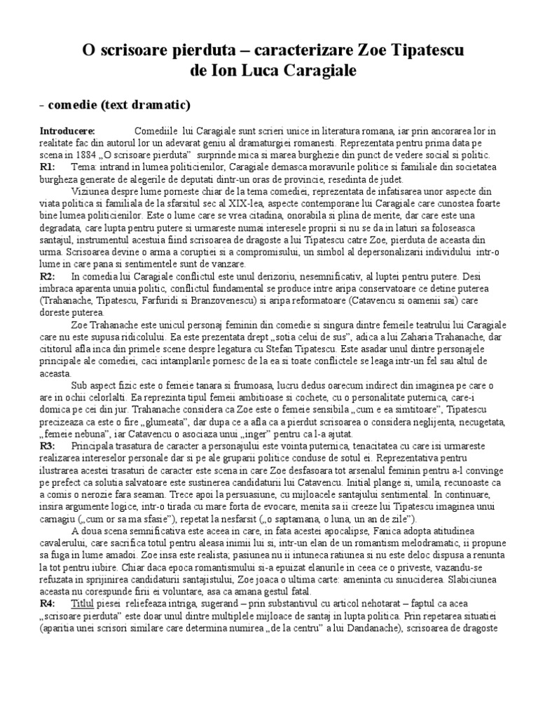 O Scrisoare Pierduta Zoe Caracterizare