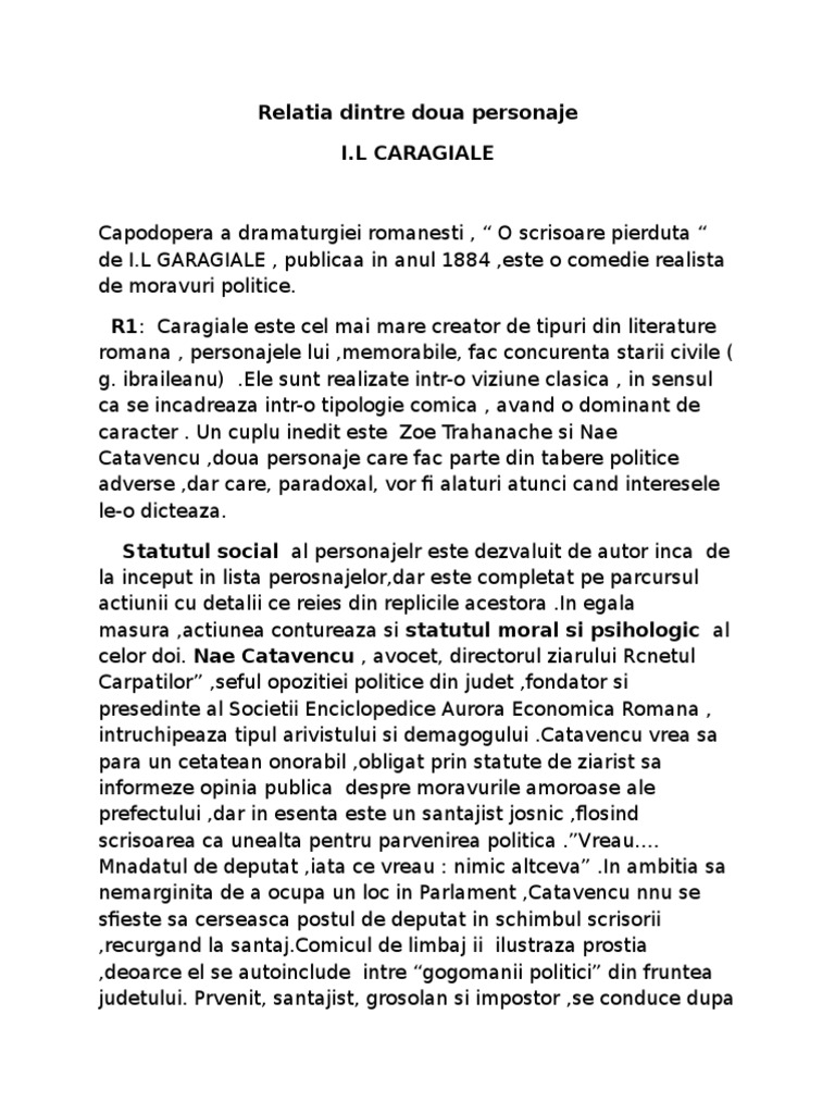 O Scrisoare Pierduta Eseu Relatia Dintre Doua Personaje