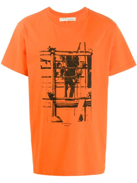 Off White Graphic Print Cotton Jersey T Shirt In Orange Modesens
