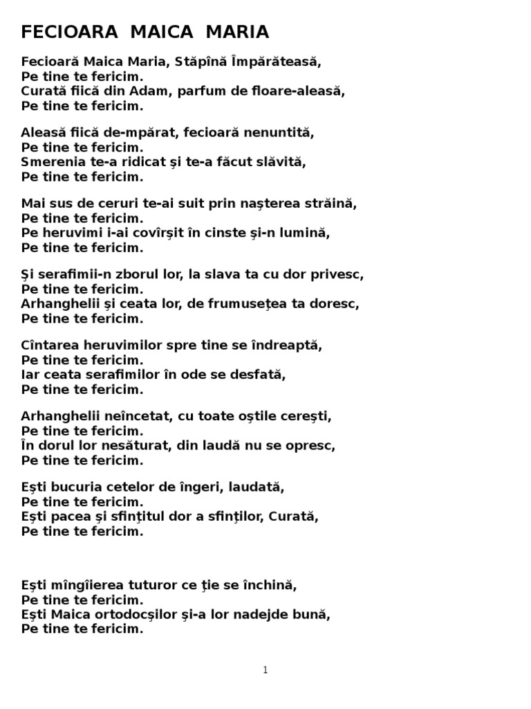 Fecioara Maica Maria Stapana Imparateasa Pe Tine Te Fericim