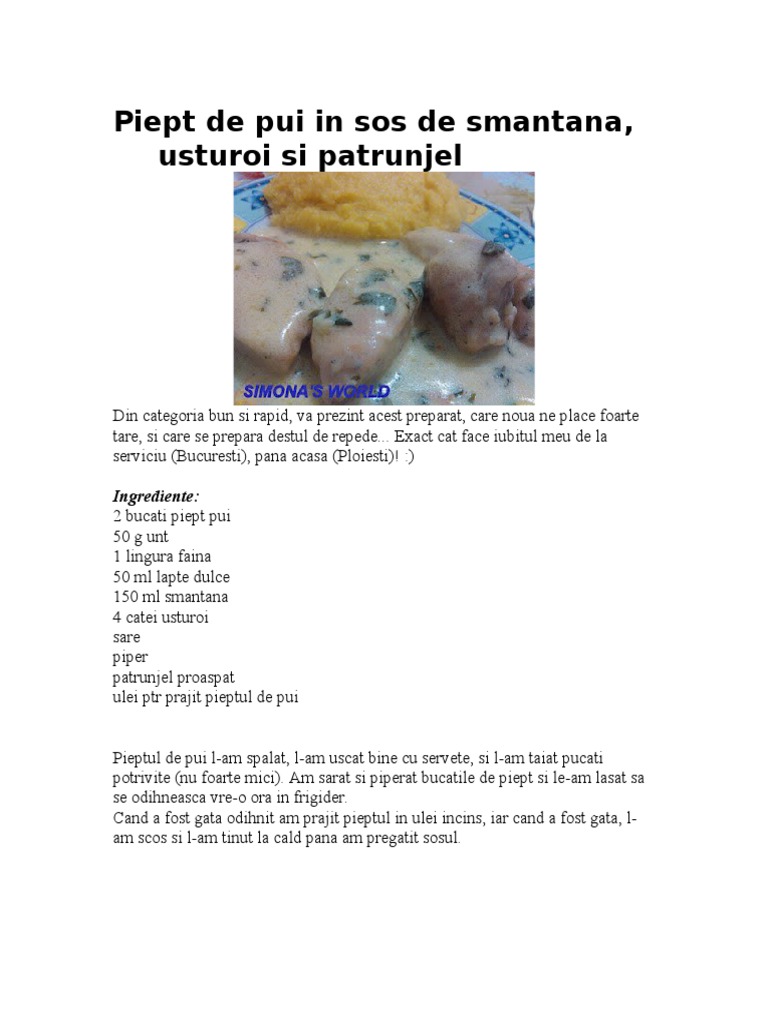Rețetă Pentru Piept De Pui In Sos De Smantana Usturoi Si Patrunjel Cu Bu