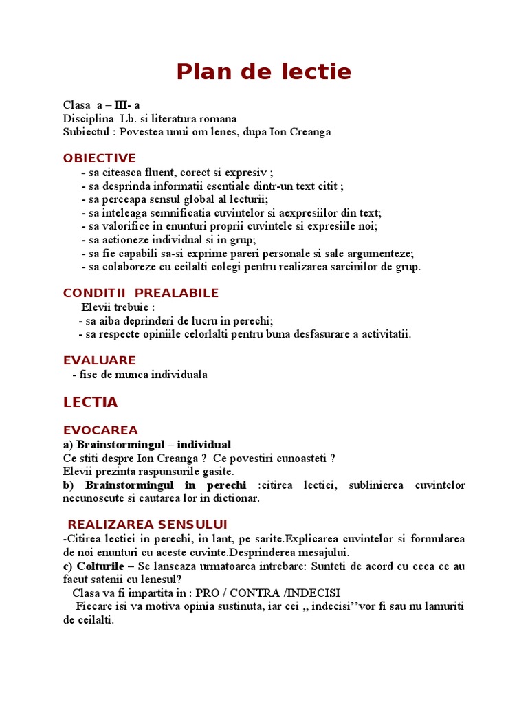 Ion Creanga Pov Unui Om Lenes