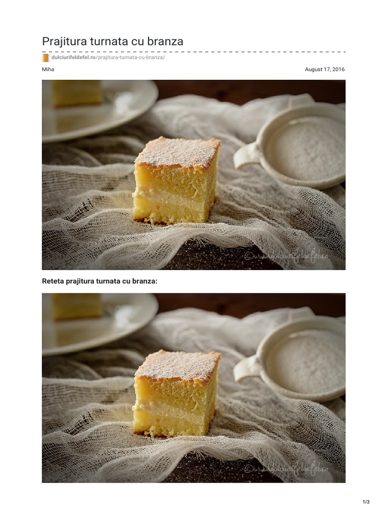Prajitura Turnata Cu Branza Retete Culinare Cu Laura Sava Cele