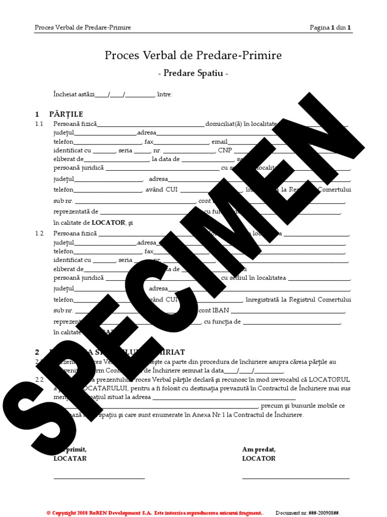 Imi poate interzice sa le iau sub amenintarea ca va chema politia daca nu achit. Download model de proces verbal de predare primire download formular model de proces verbal de predare primire in format pdf word doc. Acum imi cere sa fac un proces verbal de predare spatiu. 1 anexa la contractul de inchiriere dintre.