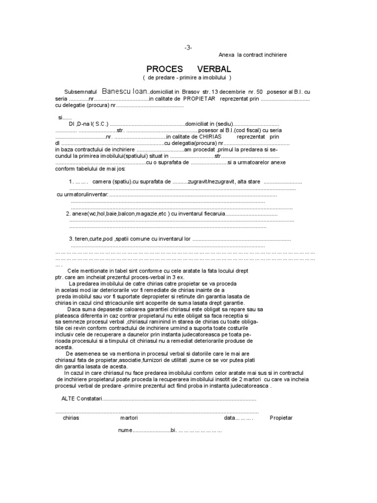 Proces Verbal De Predare Primire Apartament Docx U2022 U2022