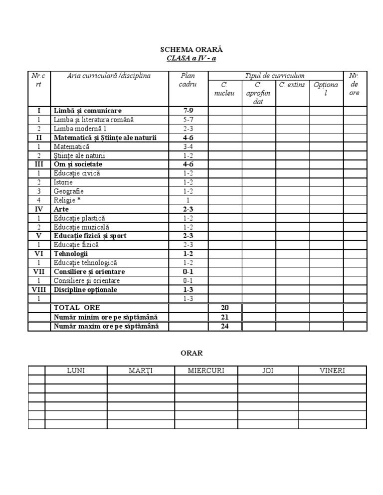 431371813 Schema Orara Iv A Emma Doc Schema Orara Clasa Iv A