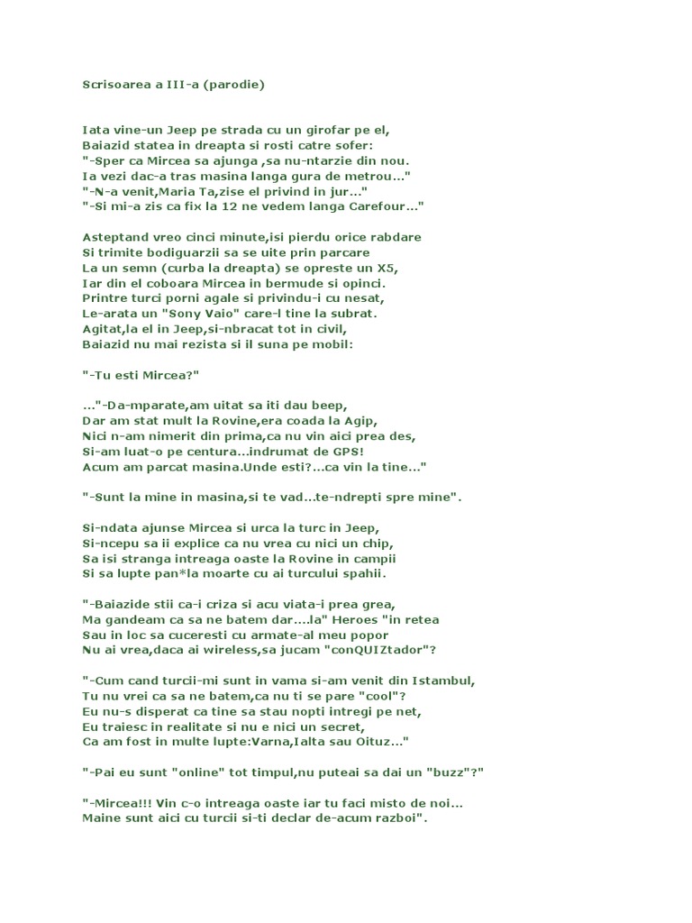 Comentarii Despre Scrisoarea A Iii A Parodie