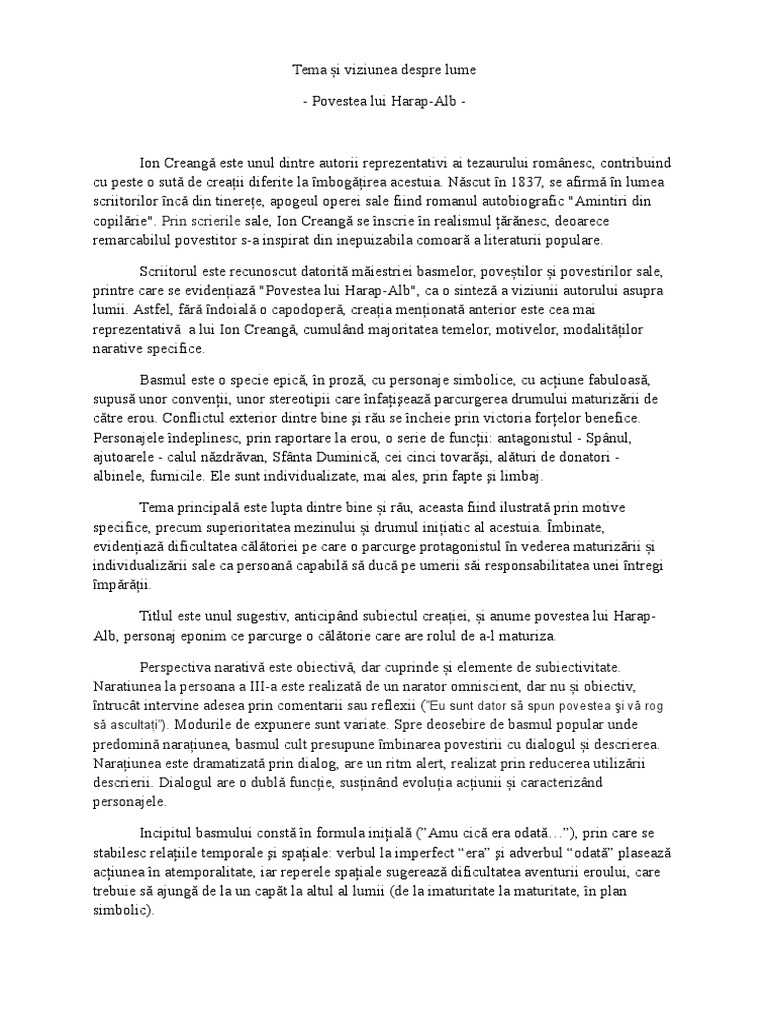 Referat Povestea Lui Harap Alb Tema Si Viziunea Despre Lume